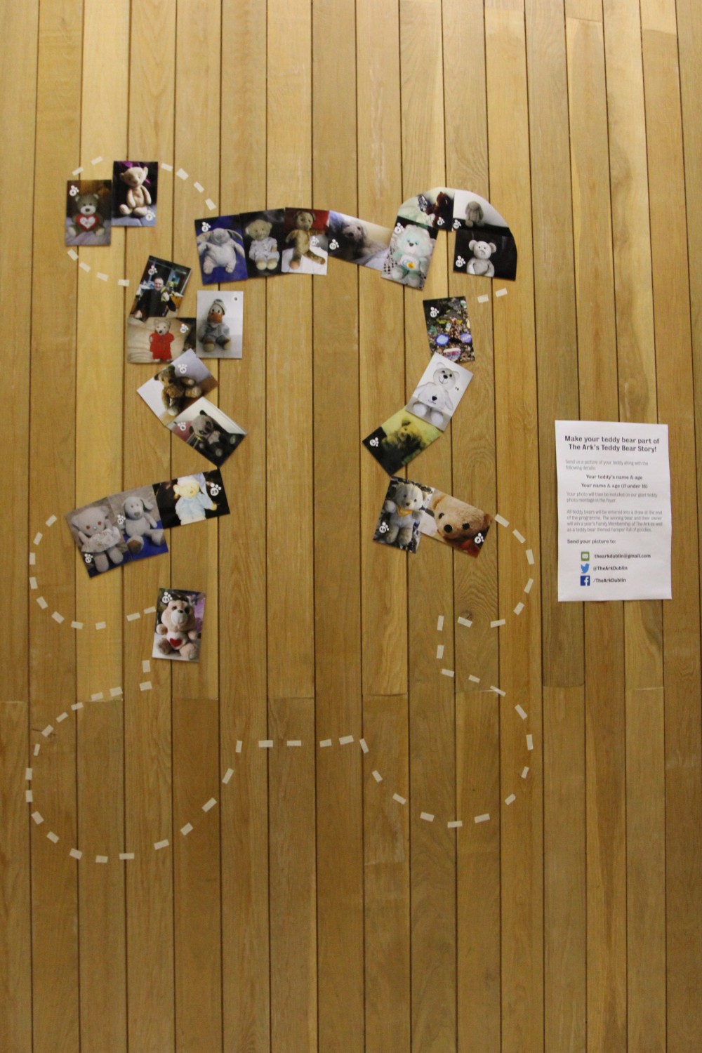 The photo of your teddy will then be printed out and will join others which will grow together to fill the outline of a giant teddy bear on the foyer wall in The Ark. All teddy bears will be entered into a draw at the end of the programme. The winning bear and their owner will win a year’s Family Membership of The Ark as well as a teddy bear themed hamper full of goodies. Deadline for submissions is 31st March