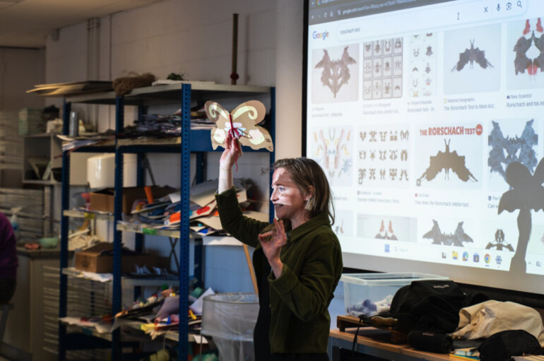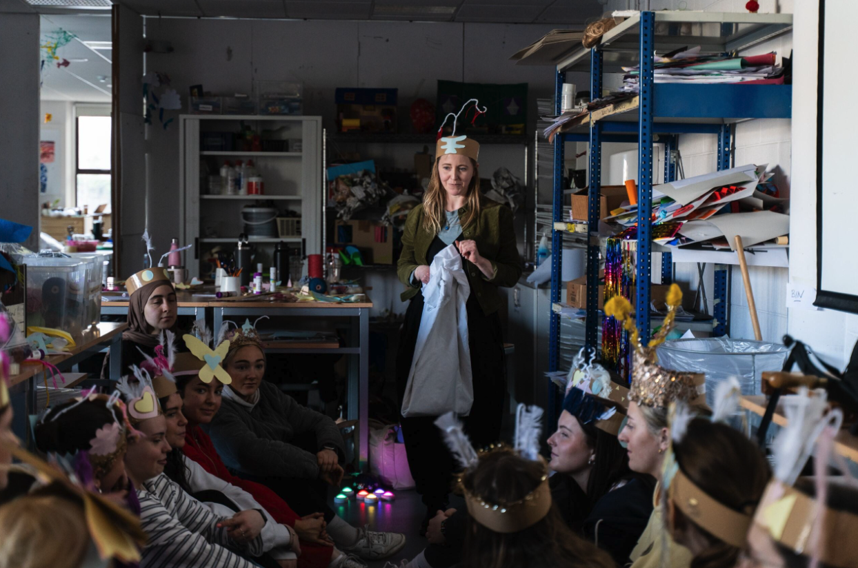 Inspired by our recent production The Last Moth, visual artist Duffy-Mooney Sheppard led student teachers in a hugely creative workshop which weaved making moth crowns with creative movement, storytelling and shadow work. As an artist, Duffy explores curiosity, fantasy, and nature. This approach to visual arts in the classroom opened the floor to collaboration and learning with the student teachers on how to elevate their classroom activities to inspire their students to stay curious and imaginative in their learning.